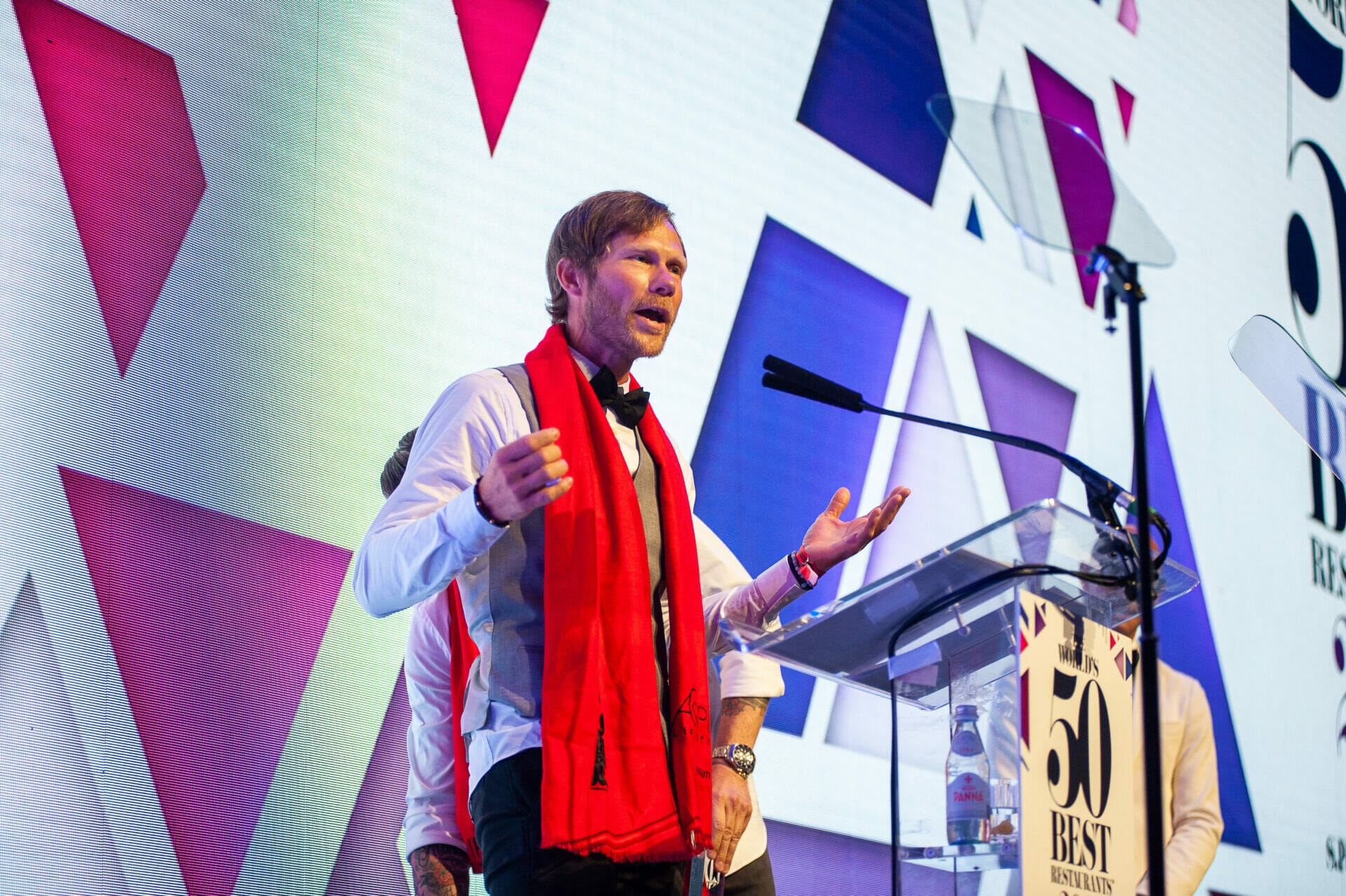 Geranium餐厅在“世界50佳餐厅”榜单中名列榜首,主厨Rasmus Kofoed上台致词。(图 Best 50)