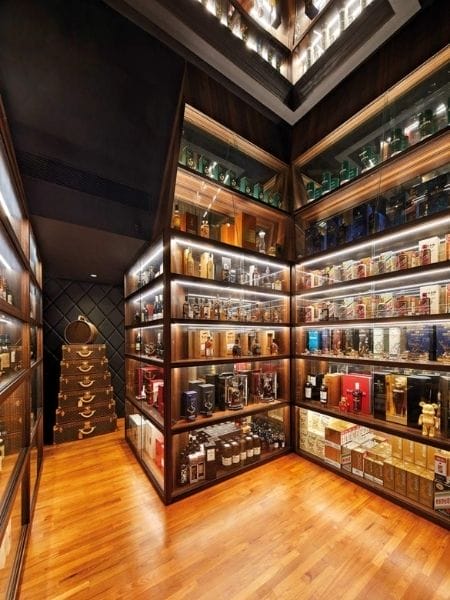 巨型铝制收藏柜是客厅的主要视觉焦点。