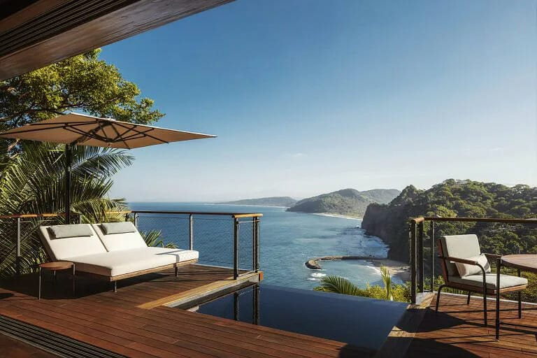 位于墨西哥的One & Only Mandarina坐落在太平洋海岸的悬崖边上,由著名设计师Rick Joy主导设计,共设105间独立套房和别墅。酒店坐拥壮阔绝美的海景、白沙滩和悬崖等自然景观,套房和别墅大多建在山坡之上或离地约12米的树冠上,被郁郁葱葱的热带雨林包围。酒店附设4家餐厅和酒吧,其中The Treetop是与自然连结的可持续餐厅,食物均采用可持续原料制作,同时推行“食物零浪费”计划。美好假日一天结束前,这里也是观赏黄金日落的最佳地点。