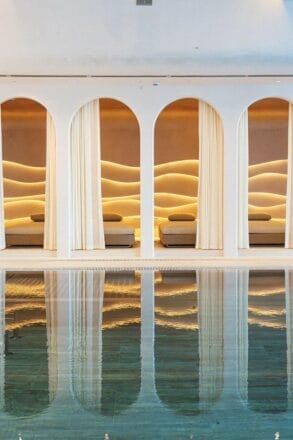 酒店标志性的游泳池是不可错过的打卡热点,巧妙地嵌入天然巨石裂缝之中,与大自然的鬼斧神工融为一体。在奢华的水疗中心尽享独特的沉浸式沙漠水疗,感受高耸的砂岩山脉与千年历史的岩壁洞穴所带来的神秘力量,伴随按摩技师的专业手法,让感官焕然一新。除了丰富的 SPA 护理,酒店还提供一系列定制化的健康体验,包括瑜伽、冥想和日落时分音疗课程,让身心重启平衡与活力。