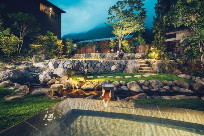 温泉旅馆位于海拔 1200 米的高处,四季更迭间的美景如诗如画,每个季节都有其独特的魅力。著名的上高地、乘鞍岳和笠岳等山脉环绕着旅馆,徒步与登山爱好者可在这里与大自然来一场亲密接触。奥飞驒温泉乡拥有 100 多处温泉源,每一个温泉都富含不同的矿物质,包括硫黄泉、碳酸泉和氯化物泉等,具有不同健康功效。旅馆的 49 间客房中,有 28 间设有露天温泉浴池,同时设有男女分开的露天温泉,可边泡汤边欣赏山脉景色。