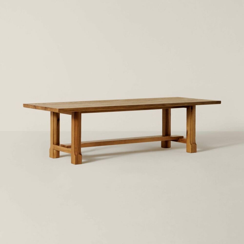 Canyon Road 玄关桌和餐桌选用手工挑选的橡木,采用现代风格的轮廓和精美的细木工,灵感源自西方风格,弧形轮廓优雅地与桨形交叉撑连接,彰显木材的天然美感和纹理。打蜡饰面突出了橡木丰富的纹理,呈现柔和、有光泽的色泽。