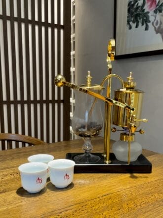 茶馆的整体设计依循宋朝美学的传统雅致,但泡茶手法和茶叶搭配却非常时髦。来到“茶吧”,一整排如同科学实验仪器的泡茶用具摆放在台面,原来这就是泡咖啡常用到的器具之一虹吸壶。这种泡茶方式绝对不是为了哗众取宠,而是为了烘焙好茶所使用的最佳利器。这种冲泡法能够让茶叶的香气更集中,避免过度萃取的问题,也有一定的保温效果。一壶茶能够重复添加四次热水,每次保温约二十分钟。
