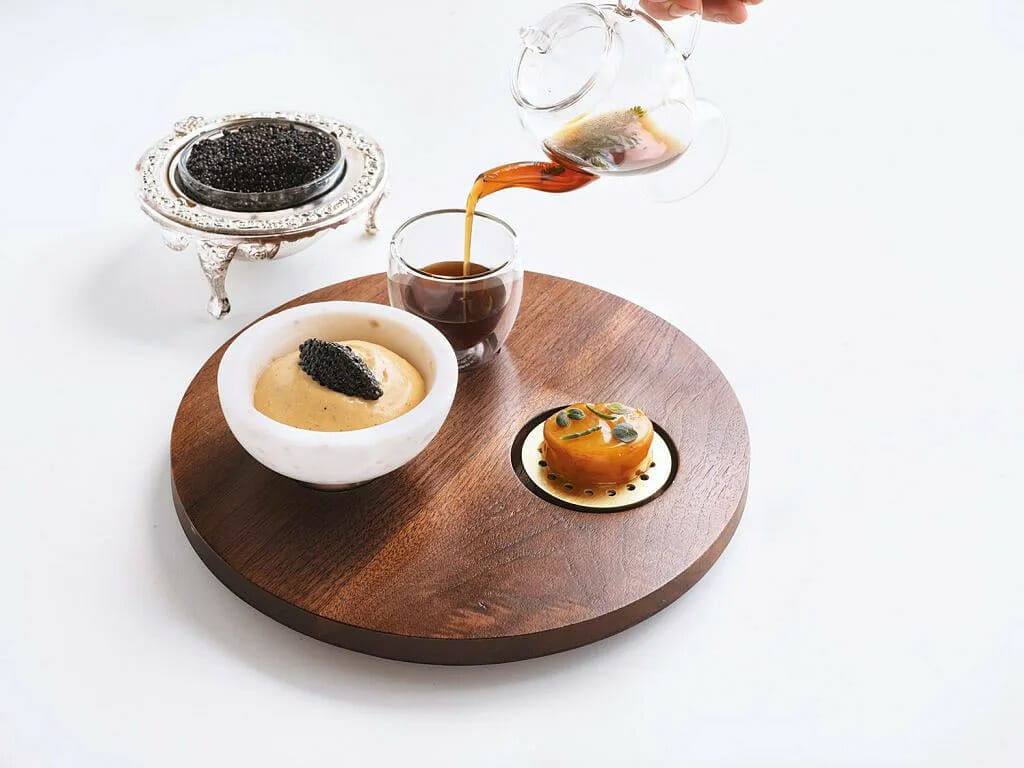 不过,选择将马铃薯与海味结合,不只是为了重新诠释经典,更因为她幼时住在爱尔兰沿海城市安特里姆,阿姨与姨丈在海边种植马铃薯的记忆,因此点缀其上的红藻、海藻和发酵马铃薯片,也是为了重现海水与土壤混合的咸鲜与矿物味。