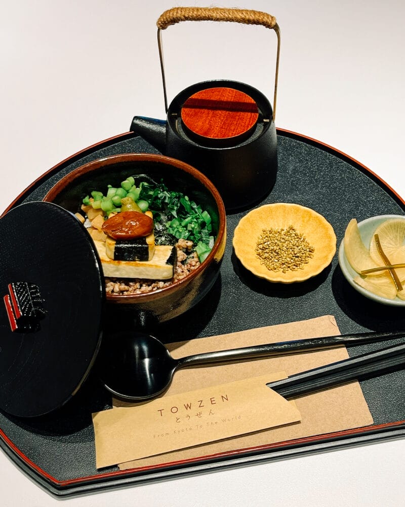 茶泡饭是一众料理中较为清淡的选择,除了豆干、蔬菜、梅子等经典元素,山葵芝麻籽也为这道料理增添了一些趣味。每一口泡饭都带着微辛辣的刺激感,给这道料理带来了口感上独特的层次。
