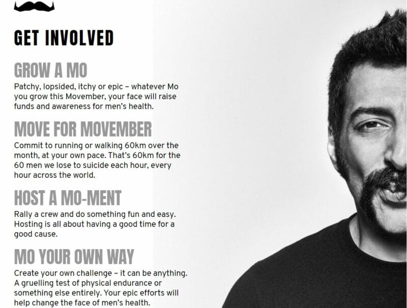 若你对这项活动感兴趣,也想加入他们的一份子成为Mo Bro或Mo Sista的话其实并不难,只要上官网注册成为会员,“挑战”宣布开始!这时候就是考验男士们“颜值”的时刻了,你可以上传一张自己蓄两撇小胡子的帅气相片,写下一段自己对于加入活动的宗旨,即可为组织筹集善款。当然你也可以组织属于自己的筹款队伍,以晒出颜值、捐款及累积跑步里程数来为慈善活动尽一份心力。