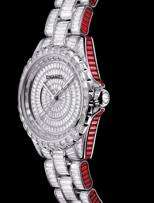 Chanel的J12 Ganse Rubis非凡珍品腕表以璀璨钻石记录时间的流逝,整体蕴透华丽的奢华格调,展现新时代女性自由不羁的魅力。