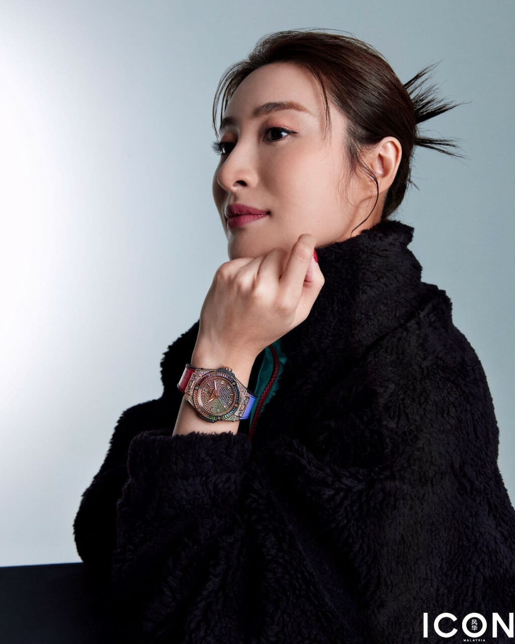 Big Bang Unico Rainbow 彩色宝石腕表/Hublot; 拼色针织上衣/Fendi