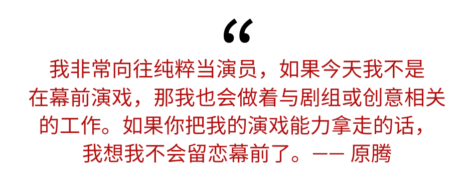 关于得奖这件事,对原腾来说绝对是事业上的助力。“得奖之前,我是新人,尤其在马来西亚,很难被人看见,再加上可以被看见的作品很少,一年接的工作量和曝光率不成正比。其实我是幸运的,我出道时遇上《守百年之约》泰禾这个角色。这个角色帮助了我打开知名度。那时只是去玩,对角色设计、对演员没有太多头绪。那个角色是一个很憨厚、痴情、很单纯的乡下人,对一个演戏小白来说是蛮吃香的,我空白去演,就很自然地成为那个人。回首过去,自己也觉得当时好像没在表演,就很自然地,就像白纸。那个角色帮了我,我现在也演不出那种感觉了。”