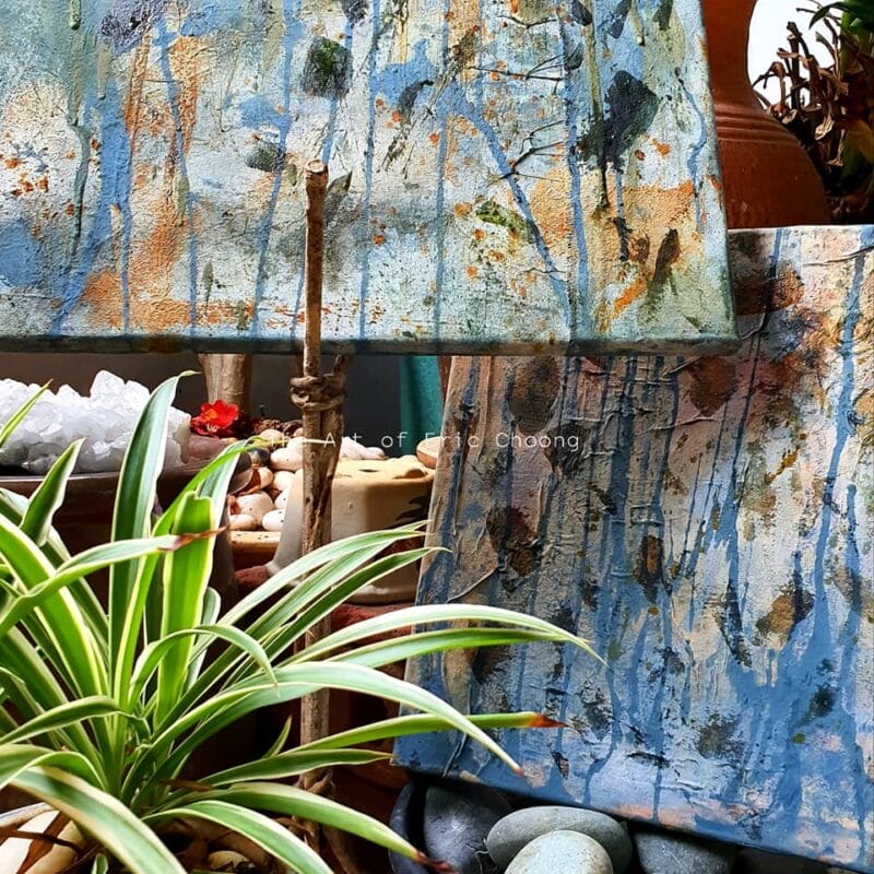 马来西亚在2020年3月颁布行动管制令后,Eric Choong萌生将蜡染艺术转化到画布上的想法。他利用植物蜡染彩绘出人生的新篇章。