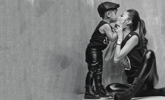 “或许是耳濡目染的关系,当我化妆时,孩子就会在旁边帮我拿唇膏啊、耳环之类的,有时候他甚至想要动手帮我化妆呢!而且孩子也遗传到我对时尚的爱好,偏好街头风的打扮而不太喜欢穿衬衫。”一起专研时尚,一起在镜头下留下美丽的亲子图,有这么一个时尚美丽的母亲,难怪孩子年纪虽小,在镜头前却架势十足。