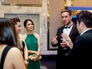 在晚宴开始前,城中上流社会的名门望族、商界精英及社交名人以黑金服装主题盛装亮相,现场衣香鬓影,金光烁烁,气氛欢乐热烈。本次晚宴主要赞助商Corum Malaysia于当晚展出了精妙绝伦的系列腕表,还特别邀请12位贵宾于晚宴正式开始之前,前往私人套间品茗香槟,并在奢华的氛围中鉴赏品牌腕表,赴往一场贵宾尊享的腕表响宴。赞助商BMW Malaysia也特别于酒店大厅展示前卫酷眩的智慧型未来主义跑车BMW i8,并于晚宴会场中展示BMW 7 Series豪华轿车,让人近距离欣赏豪华轿车的魅力。