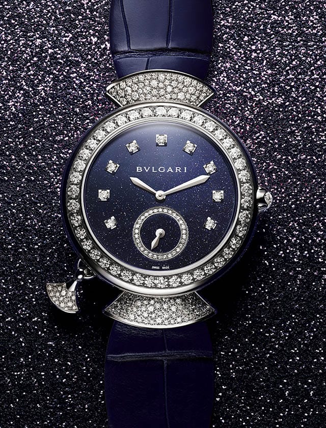 自1918年以来,Bvlgari以珠宝腕表的艺术之美及顶尖工艺蜚声国际,今年,品牌比以往任何时候都更大胆创新,于巴塞尔钟表展上推出一系列杰作,其中以Divas’Dream Finissima Minute Repeater三问腕表为代表。这款腕表的表圈镶嵌美钻,搭配颜色深邃迷人的砂金石表盘,搭载品牌有史以来最薄的三问报时女表机芯,扇形吊饰作为三问报时的启动装置,华美典雅。仅限量推出十枚。