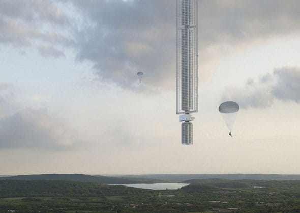 在各国争相建立超高的摩天大楼昭显国家经济实力之际,美国云端建筑事务所(Clouds Architecture Office, CAO)却提出了一个大胆近乎疯狂的设计——日形迹塔(Analemma Tower),从天而降的超高层摩天大楼设计概念。