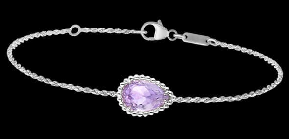 说起钻石珠宝,简约的设计也深受多人喜爱,就如这款来自Boucheron的Serpent Bohème系列,将设计重点放在宝石上并以简约细节衬托着,令这系列显得格外清新亮丽与散发着浓郁的波希米亚风,让人看了心动不已。此系列以灵蛇为主,代表着永生,此外还扮演着守护者的角色。当中,这款白金手链的中央,镶嵌一颗水滴型切割紫水晶,其圆珠饰边让它便得更加晶莹透亮。