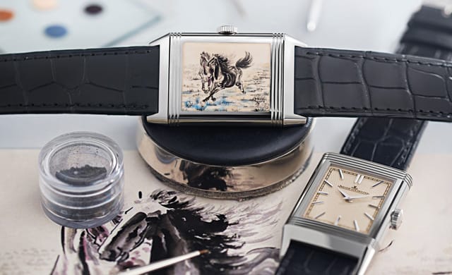 品牌的珐琅工艺大师从这幅画作中的其中两匹骏马汲取灵感,设计此腕表的珐琅微绘,并希望藉此作品呈现中国水墨画的独特神韵与磅礴气势。对于素来擅长以缤纷色彩创作的珐琅工艺大师而言,只运用黑、白色调创作单色的珐琅微绘作品是一大挑战。然而,最终完成的画作不仅成功捕捉骏马奔腾的气势与活力姿态,也体现了水墨的流畅与轻灵,见证了大工坊珐琅工艺大师的非凡才华。