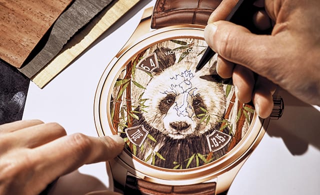 Vacheron Constantin Les Cabinotiers阁楼工匠“Mecaniques Sauvages丛灵野趣”主题系列再推新品,以老虎和大熊猫为主题,通过品牌精湛的制表技艺和艺术工艺,栩栩如生地描绘出野生动物的威严与活力。系列由品牌Les Cabinotiers阁楼工匠部门精心打造,每枚表款均独此一枚。腕表搭载2460 G4机芯,时间和日期以表盘边缘的四窗格显示,为表盘中央的老虎和大熊猫装饰图案留出了充足空间。
