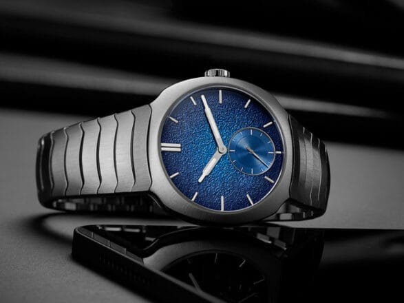 亨利慕时(H. Moser & Cie.)全新 Streamliner Small Seconds Blue Enamel 腕表在钟表展亮相。这款Streamliner 小秒针蓝色珐琅腕表,突破呈现全新微型摆陀机芯及最新色彩的 “大明火” 珐琅 fumé 烟熏表盘,展现品牌标志性精钢链带腕表的卓越手工工艺。