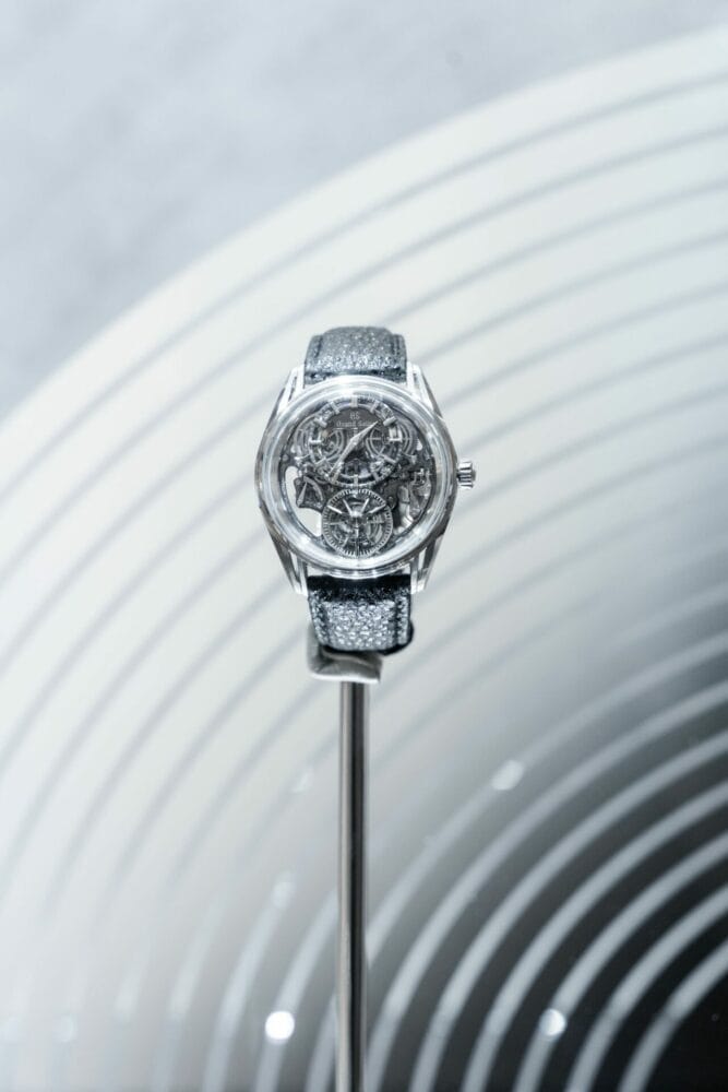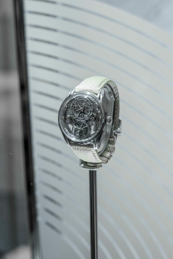 现场展示了两款 Kodo Constant-Force Tourbillon 陀飞轮腕表,彰显品牌在制表艺术上精益求精的精神。“Kodo“在日语中为”心跳“,品牌在制表史上首次将陀飞轮和恒力机构结合为一个单位,并同轴运作。这项创新不仅仅是一项技术成就,更因其极高且稳定的精确度而受到赞誉。