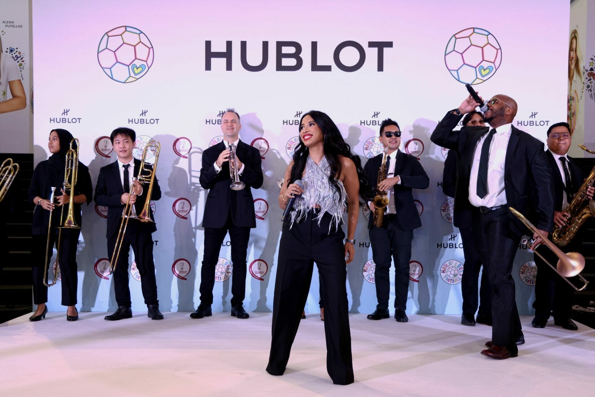 宇舶表与The Hour Glass邀请媒体及城中名人一起参与“宇舶爱足球”活动。一支由多才多艺的长号手、乐队领队、作曲家Q Sound和歌手Tasha带领的16人合奏团登上了舞台,将当晚的气氛推到最高点。现场还设置了一个赛事计时器,让来宾打卡拍照。