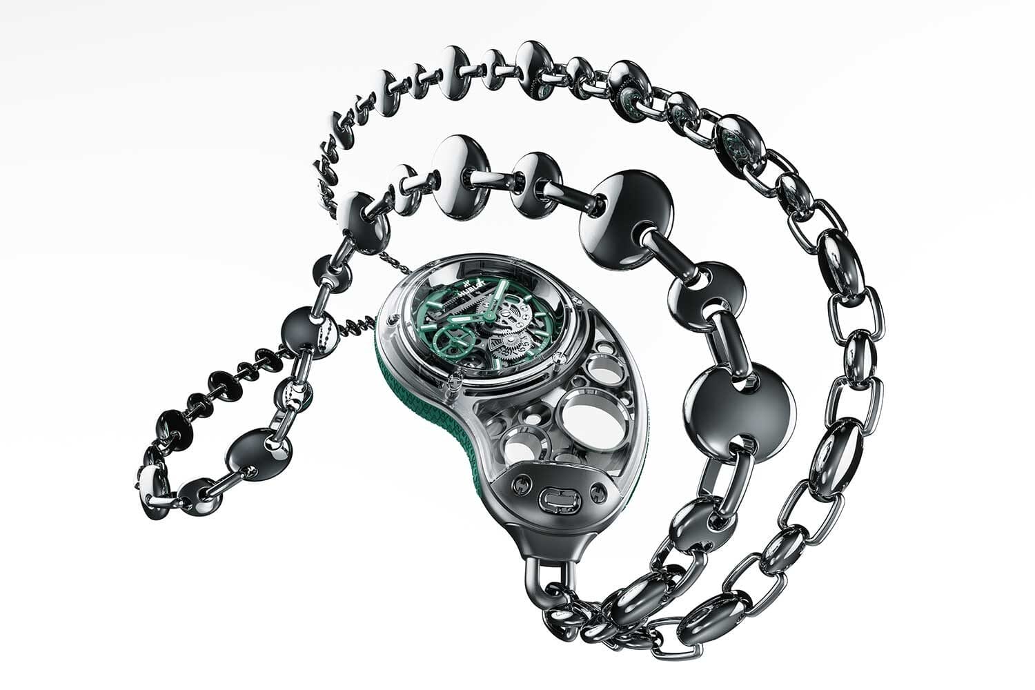 继成功推出可变形怀表 MP-16 Arsham Droplet 之后,这款新作再次颠覆了传统的腕表设计规范,从水的动态本质、有机形态和通透质感中汲取灵感,完美呈现了一件可穿戴的艺术雕塑。