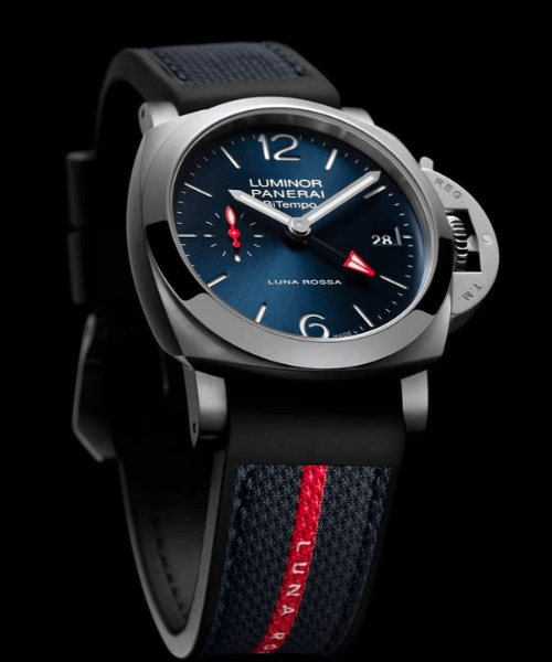 Luna Rossa 队是最近一次美洲杯帆船赛中普拉达杯的冠军,是世界顶级帆船俱乐部之一。沛纳海(Panerai)与 Team Luna Rossa 对海洋世界有着共同的爱好,并拥有引以为豪的意大利传统,自 2017 年起便成为合作伙伴,沛纳海为该团队提供支持,并从Luna Rossa航海技术中汲取灵感,打造出彰显游艇运动精神的腕表宇宙。为配合 2024 年在巴塞罗那举行的下一届美洲杯帆船赛的开始,以及他们续签合作伙伴关系,Luminor Luna Rossa以全新面貌亮相。