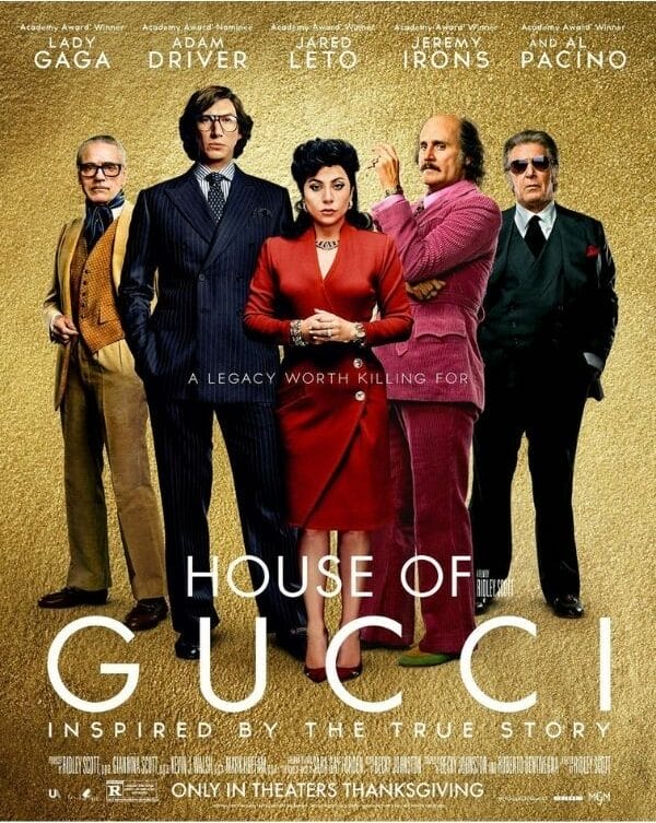 改编自书籍的《House of Gucci》电影由著名导演Ridley Scott执导,Adam Driver饰演古驰第三代继承人莫里吉奥古驰,而Lady Gaga则饰演买凶杀夫的“黑寡妇” 吉雅雷吉亚尼,揭晓古驰(Gucci)真人真事的血案故事。这部电影从策划到完成一直受到外界的关注,古驰家族更大力抨击电影制作没有得到他们的同意而开拍。当然,最大的热话题是Lady Gaga苦练意大利语,穿上各式古驰经典服装的精湛演技。