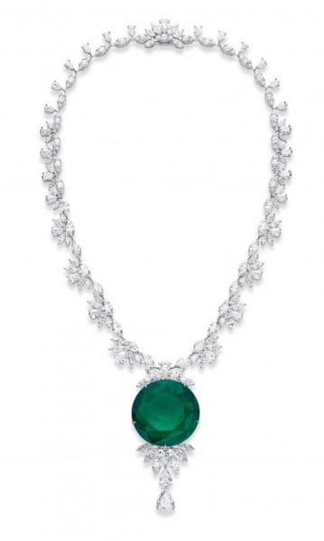 61.79 克拉圆形切割祖母绿与钻石项链。
